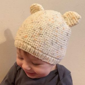 snuggly spots bear hat on Thea
